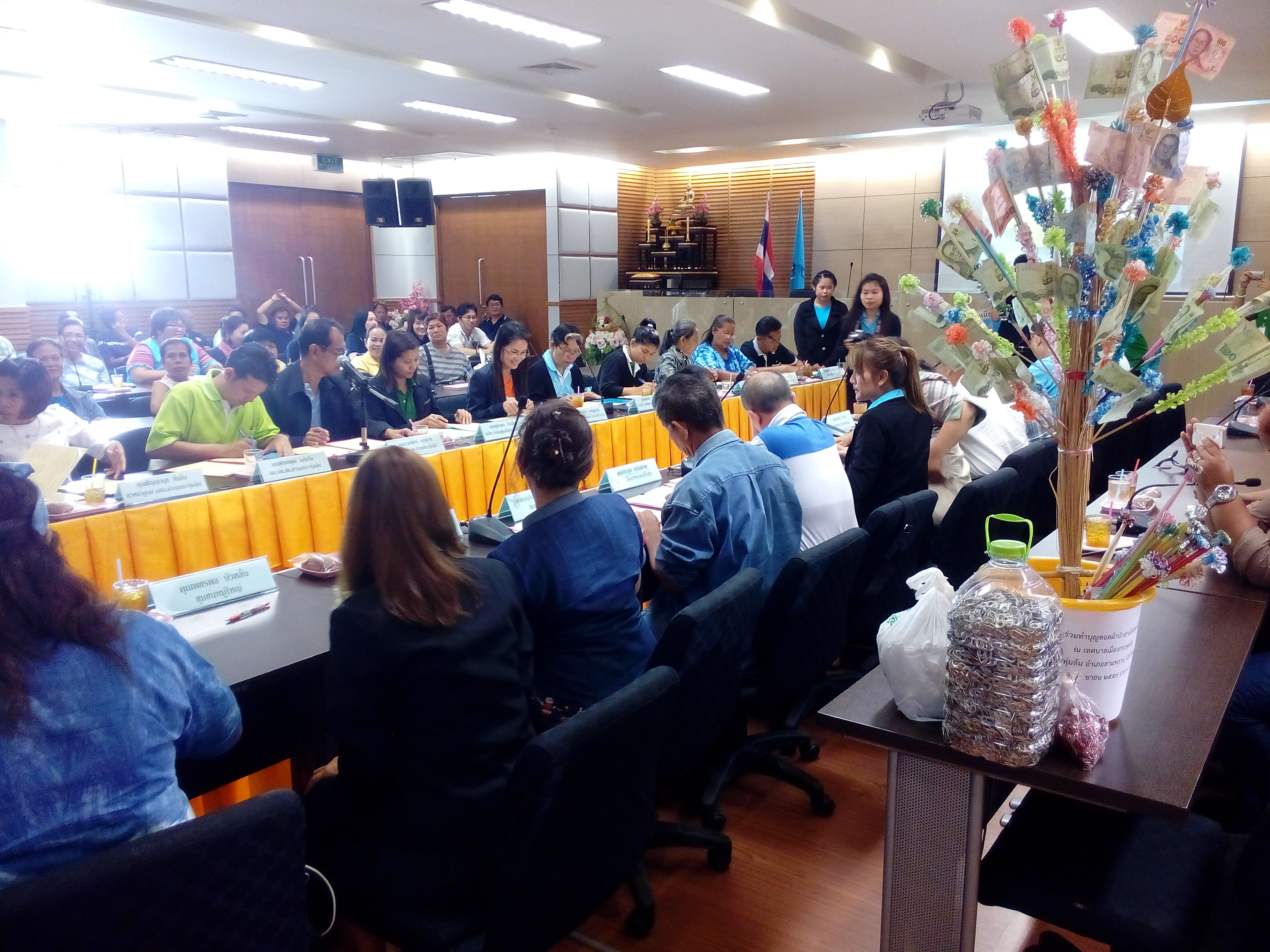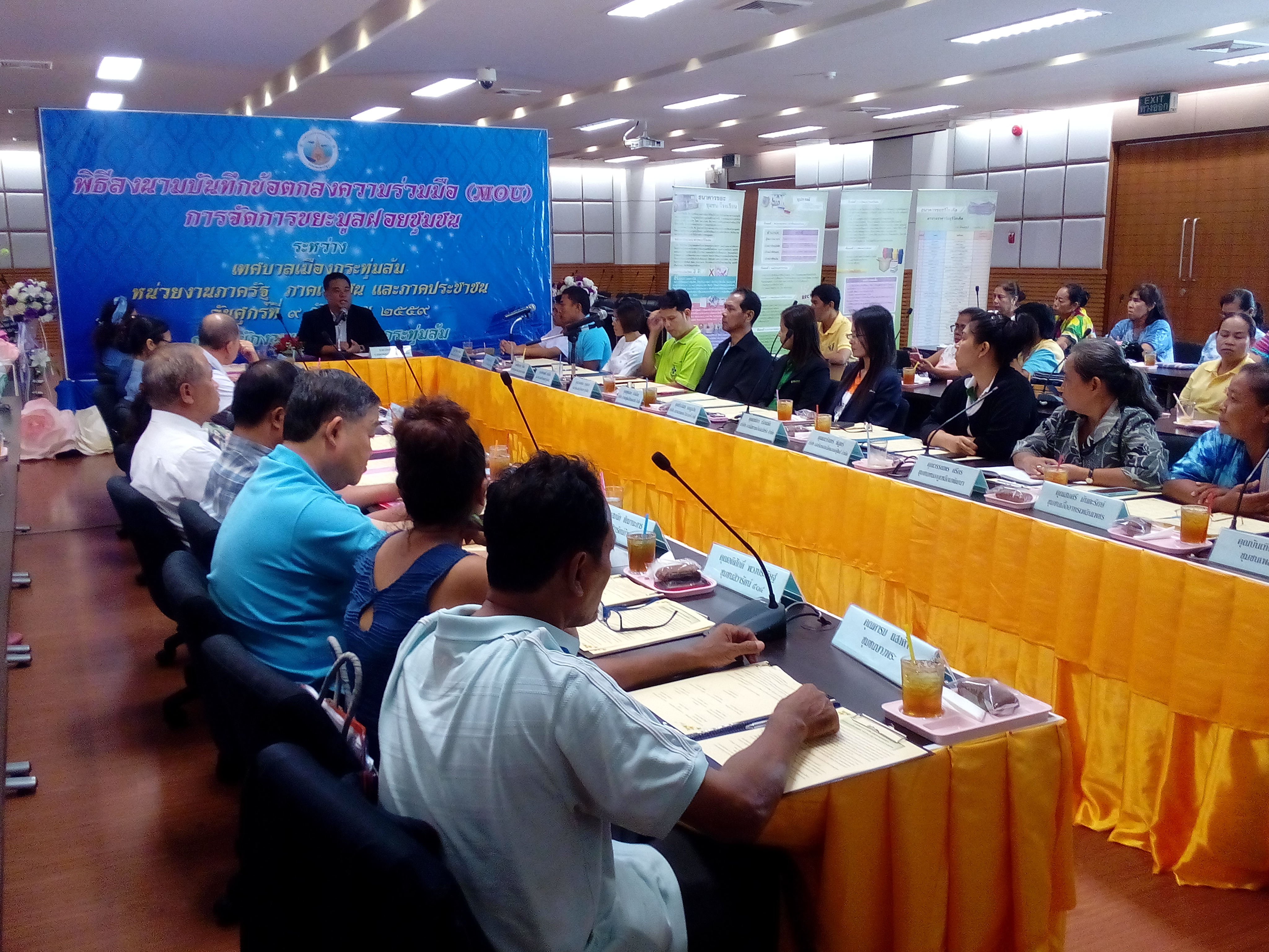 เทศบาลเมืองกระทุ่มล้มและชุมชนต่าง ๆ จัดกิจกรรมลงนาม MOU การจัดการขยะรีไซเคิล โดยยึดหลัก 3 R ได้แก่