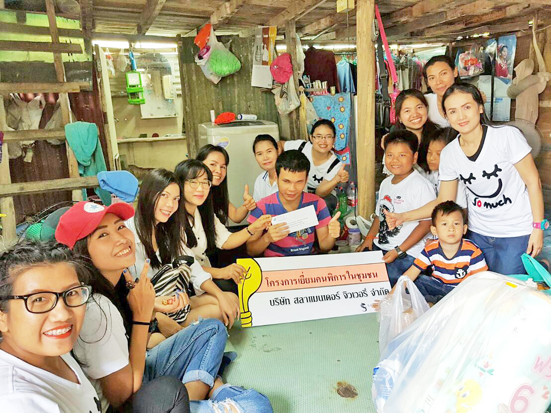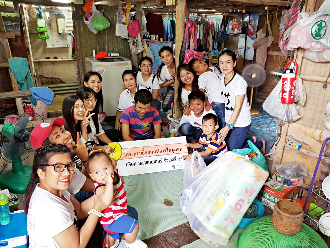 โครงการเยี่ยมคนพิการในชุมชน บริษัทฯ จัดขึ้นด้วยมีวัตถุประสงค์ในการส่งเสริมให้พนักงานรู้จักการแบ่งปันให้กับคนที่ด้วยกว่า ความรู้สึกดี ๆ รู้จักการให้ และบริจาคทรัพย์ตามกำลังศรัทธา การแบ่งปันนี้ มาจากพนักงานทั้งโรงงานได้ช่วยกันสร้างกิจกรรมการหารายได้ช่วยคนพิการ จากการขายบัตรการกุศล เพื่อนำปัจจัยต่าง ๆ ไปบริจาคให้กับคนพิการในชุมชน กิจกรรมดี ๆ เหล่านี้ เราจัดขึ้นทุก ๆ ปี อีกส่วนหนึ่ง คนในครอบครัวของพนักงาน ก็สามารถไปร่วมกิจกรรมดี ๆ เหล่านี้ได้ ได้ทำความดี ได้บุญ อีกทางหนึ่ง