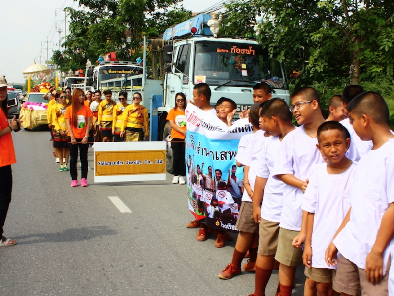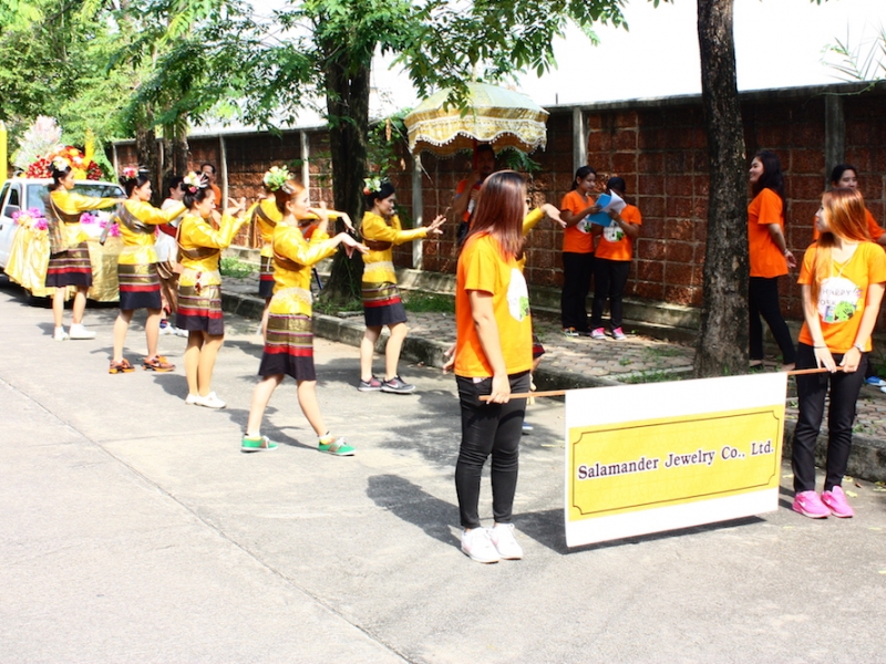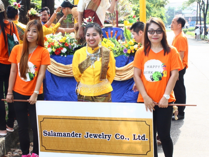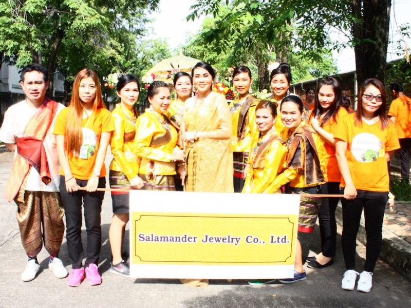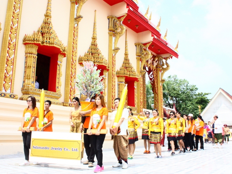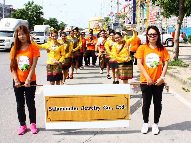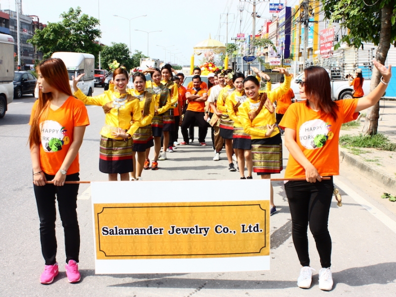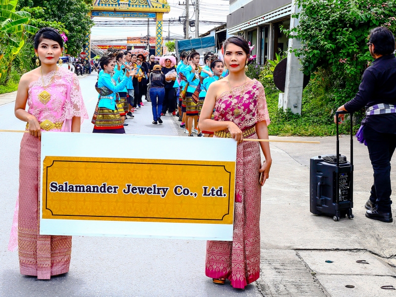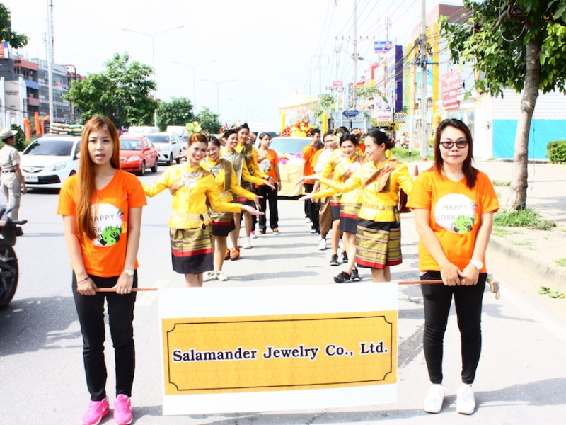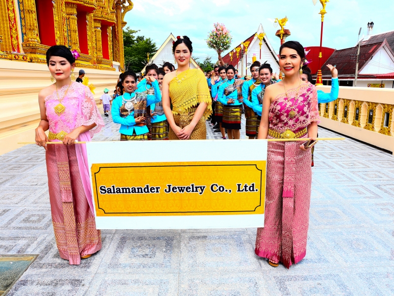 การสืบทอดประเพณี และวัฒธรรมในท้องถิ่น ทำให้บริษัท สลาแมนเดอร์ จิวเวอรี่ จำกัด ได้เล็งเห็นถึงการมีส่วนร่วม และเป็นการประชาสัมพันธ์ประเพณีท้องถิ่นในชุมชน สร้างวัฒนธรรมที่ดีในองค์กร และการสนับสนุนด้านการมีส่วนร่วมของพนักงานได้มีโอกาสทำบุญร่วมกัน กิจกรรมนี้จัดขึ้นปีละ 1 ครั้ง พนักงานของเราได้มีส่วนร่วมกับชุมชนอย่างเต็มที่ พนักงานของบริษัทฯ ได้เข้าร่วมการแห่เทียนเข้าพรรษา มีการแสดงการรำเชิงในขบวนแห่อย่างสวยงาม จัดขึ้นวันที่ 7 กรกฏาคม 2560