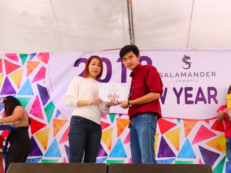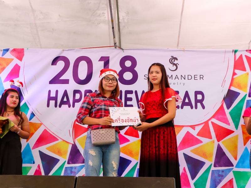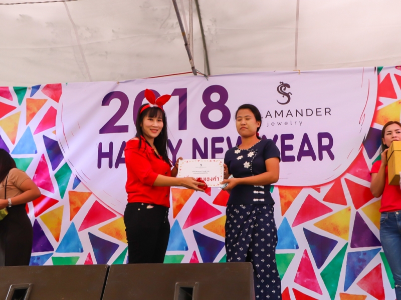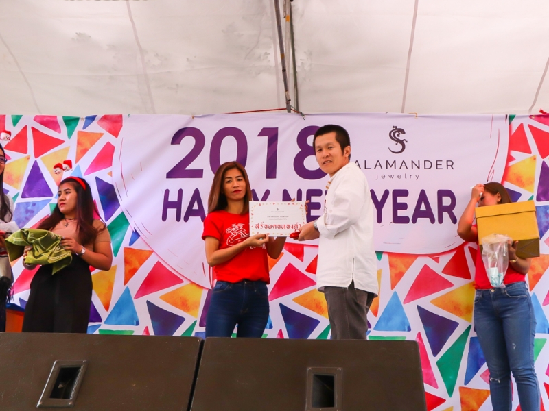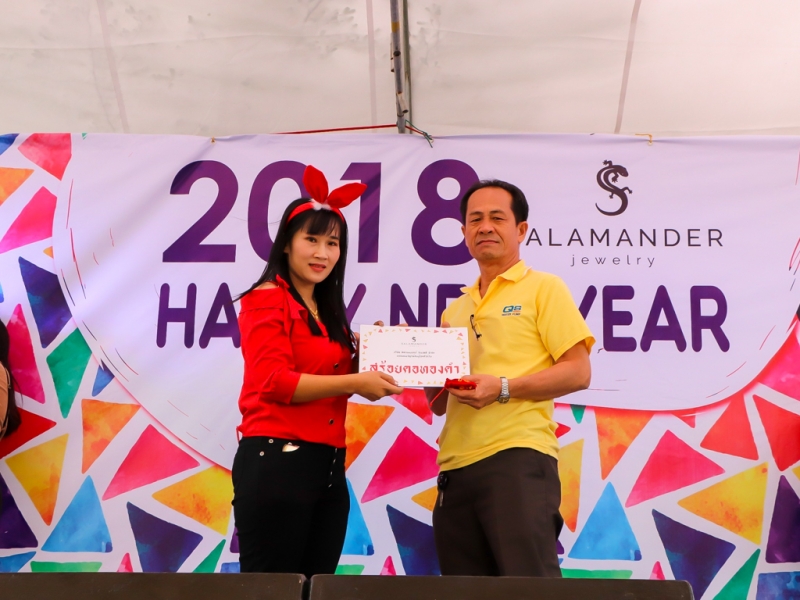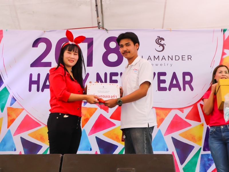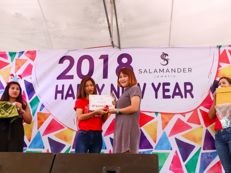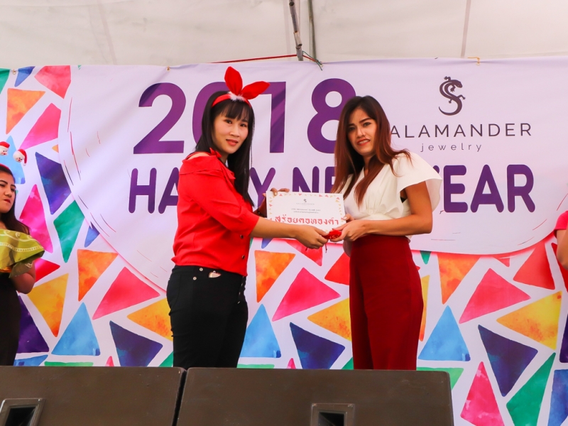 บริษัท สลาแมนเดอร์ จิวเวอรี่ จำกัด ได้จัดกิจกรรมจัดเลี้ยงสังสรรค์ส่งท้ายปีเก่าต้อนรับปีใหม่ ประจำในแต่ละปี เพื่อเป็นการสร้างบรรยากาศผ่อนคลาย และความสนุกสนานให้กับพนักงานในบริษัทฯ หลังจากได้ทุ่มเทแรงกายแรงใจให้กับการทำงานมาอย่างเต็มที่ตลอดทั้งปี ทางบริษัทฯ จึงได้จัดเตรียมของขวัญพิเศษ และของขวัญอื่น ๆ อีกมากมาย เพื่อทำการจับฉลาก แจกของรางวัลให้แก่พนักงานทุกคน นอกจากนั้นยังมีการจัดเลี้ยงอาหาร (โต๊ะจีน) ให้พนักงานได้อิ่มหน่ำสำราญพร้อมที่จะลุยงานกันต่อไป