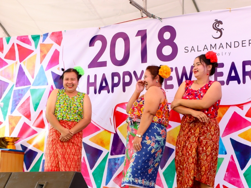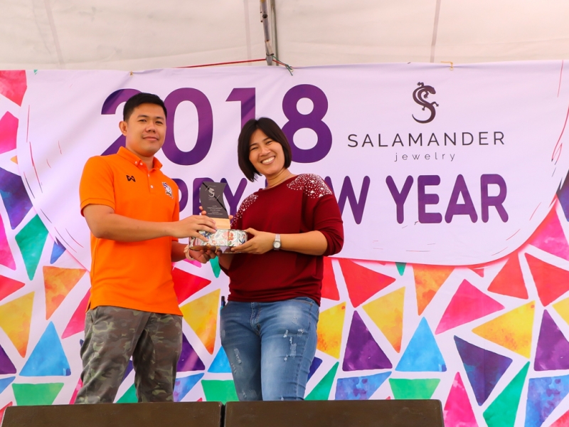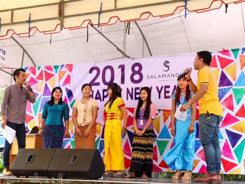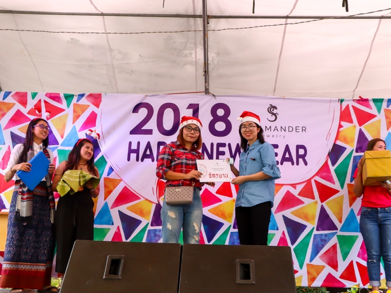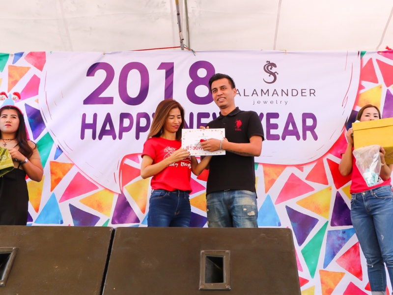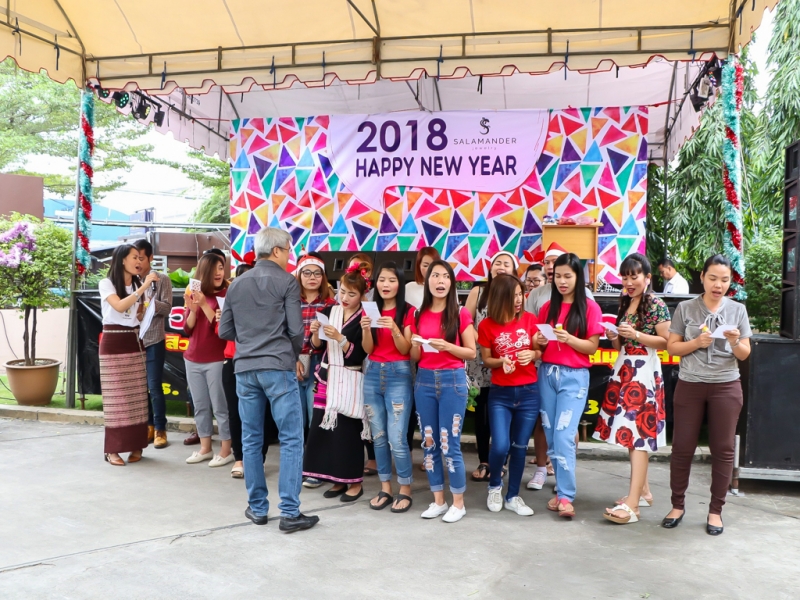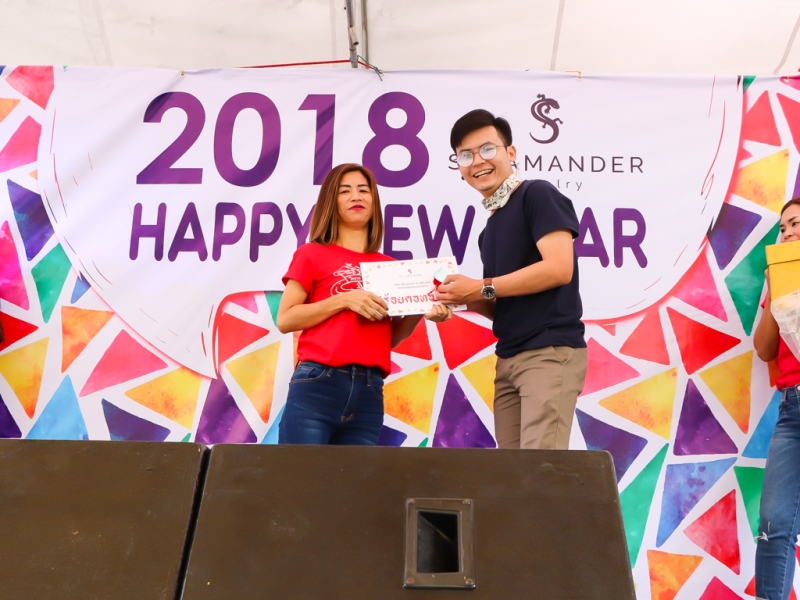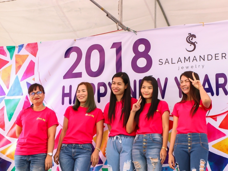 บริษัท สลาแมนเดอร์ จิวเวอรี่ จำกัด ได้จัดกิจกรรมจัดเลี้ยงสังสรรค์ส่งท้ายปีเก่าต้อนรับปีใหม่ ประจำในแต่ละปี เพื่อเป็นการสร้างบรรยากาศผ่อนคลาย และความสนุกสนานให้กับพนักงานในบริษัทฯ หลังจากได้ทุ่มเทแรงกายแรงใจให้กับการทำงานมาอย่างเต็มที่ตลอดทั้งปี ทางบริษัทฯ จึงได้จัดเตรียมของขวัญพิเศษ และของขวัญอื่น ๆ อีกมากมาย เพื่อทำการจับฉลาก แจกของรางวัลให้แก่พนักงานทุกคน นอกจากนั้นยังมีการจัดเลี้ยงอาหาร (โต๊ะจีน) ให้พนักงานได้อิ่มหน่ำสำราญพร้อมที่จะลุยงานกันต่อไป