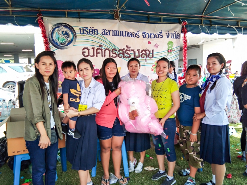 บริษัท สลาแมนเดอร์ จิวเวอรี่ จำกัด จัดกิจกรรมสำหรับเด็ก ๆ ด้วยพลังของทีมงานจิตอาสา โดยเราได้มาสร้างความสนุกสนานให้เด็กในกิจกรรมด้วยการแปลงร่างเป็นเด็กนักเรียนสุดน่ารัก ในงานวันเด็กแห่งชาติ ประจำปี 2561 กับคำขวัญที่ว่า “รู้คิด รู้เท่าทัน สร้างสรรค์เทคโนโลยี” ทีมงานจิตอาสาของสลาแมนเดอร์ฯ จัดเต็มกับเกมส์สนุก ๆ ให้กับเด็ก โดยมีเกมส์ โยนห่วง, ตอบคำถาม, คณิตคิดเร็ว , โยนบอลเข้าตระกร้า, เหยียบลูกโป่ง ตกท้ายด้วย เก้าอี้ดนตรี ให้ทั้งเด็ก และผู้ใหญ่ได้ร่วมสนุกกัน เมื่อวันที่ 13 มกราคม 2561 ที่ผ่านมา ณ เทศบาลกระทุ้มล้ม