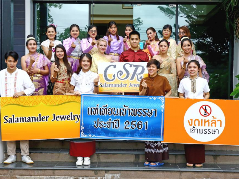 บริษัทสลาแมนเดอร์ จิวเวอรี่ จำกัด เป็นส่วนหนึ่งในการสืบสานวัฒนธรรมประเพณีของไทย และอนุรักษ์วัฒนธรรมประเพณีไทย สำหรับคนรุ่นใหม่ บางท่านยังไม่เห็นความสำคัญในวันเข้าพรรษา ดังนั้นเราจึงร่วมกันแสดงออกถึงความเป็นไทย ในปีนี้เน้นให้พนักงานสวมใส่ผ้าไทยๆ